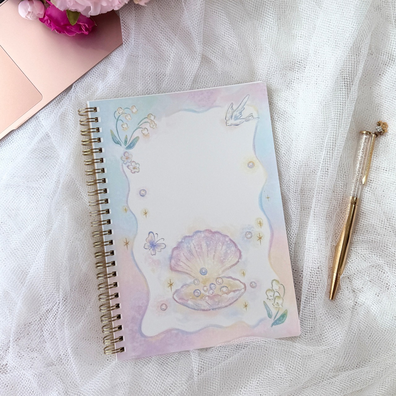 優しいタッチで描かれたシェルとパール、